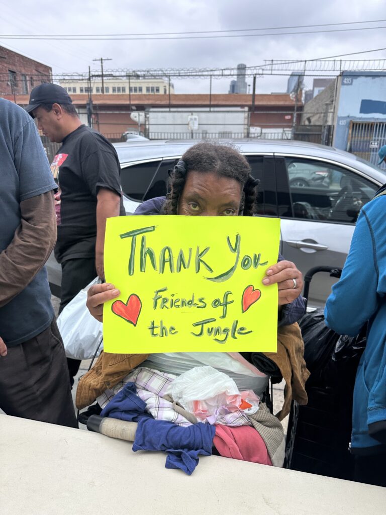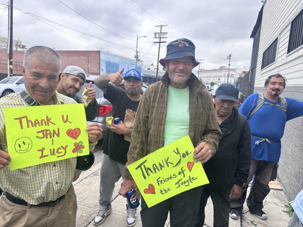 The Friends of the Jungle had their annual neighborhood cleanup and set up a donation table for clothes and shoes. Today, those items were distributed directly to our homeless living on the streets of downtown Los Angeles. They were so thankful for all the clothes and items donated. A big shoutout and THANK YOU to Jan and Lucy for making it all possible!