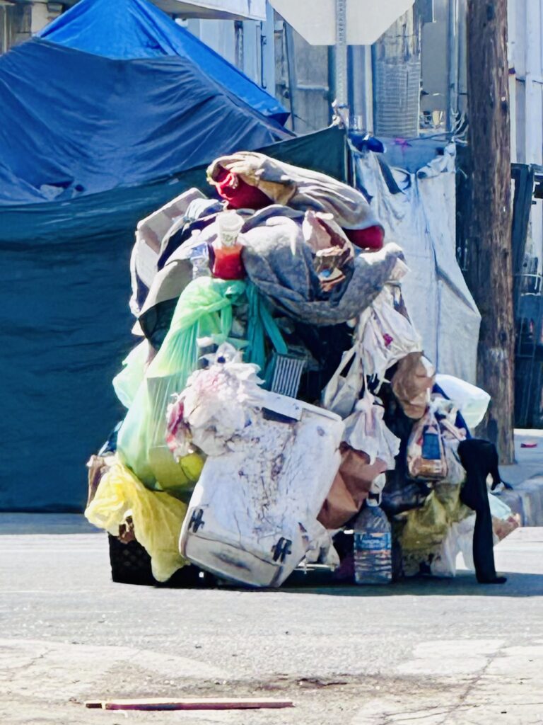 We are able to continue our services to the homeless in Downtown Los Angeles thanks to the generosity of our volunteers who assist us every other Saturday with setting up and collecting food and clothing. However, it’s disheartening to see that the situation is not improving, as evidenced by the growing number of tents that are being squeezed together on the streets.