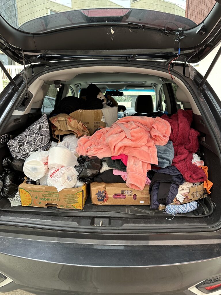Thanks to the generosity of our donors from the blanket drive, we were able to begin distributing blankets bundled with knit caps, gloves, scarves, underwear, and t-shirts to those in need. In addition, we provided much-needed toilet paper and fresh burritos to our unhoused neighbors. Your support helped bring warmth, comfort, and nourishment to so many during this time.