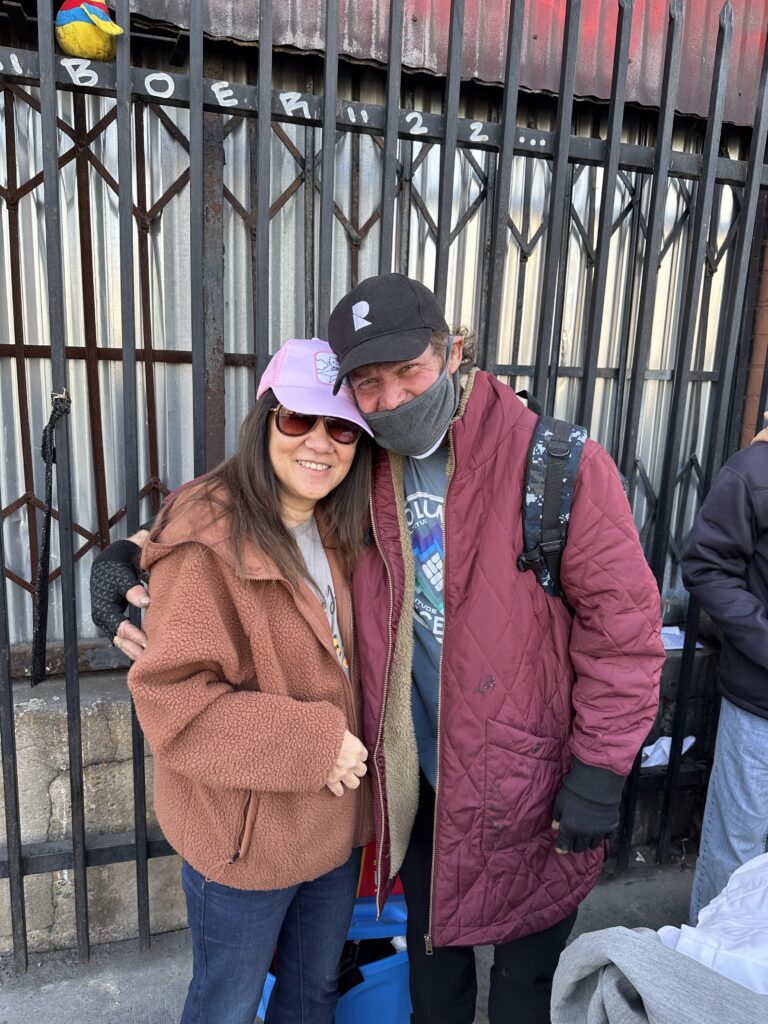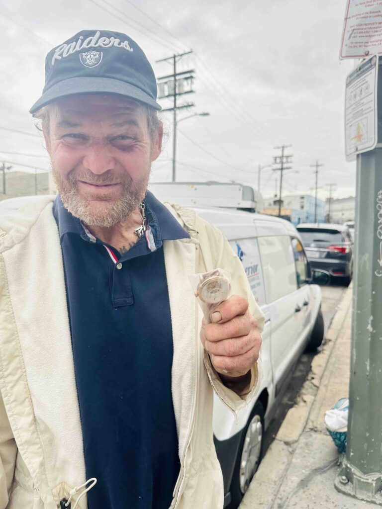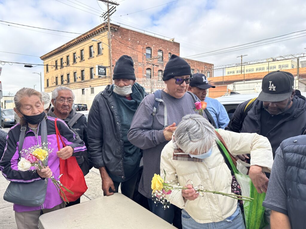 We are especially grateful to Trader Joe’s in Marina del Rey (please see our hero’s page) for their generous donation of beautiful roses, which we distributed alongside food and clothing. Those simple yet meaningful flowers brought smiles, warmth, and a reminder to so many that they are seen, valued, and cared for. Every act of kindness — whether a meal, a jacket, or a single rose — helped make a difference in the lives of the people we serve.