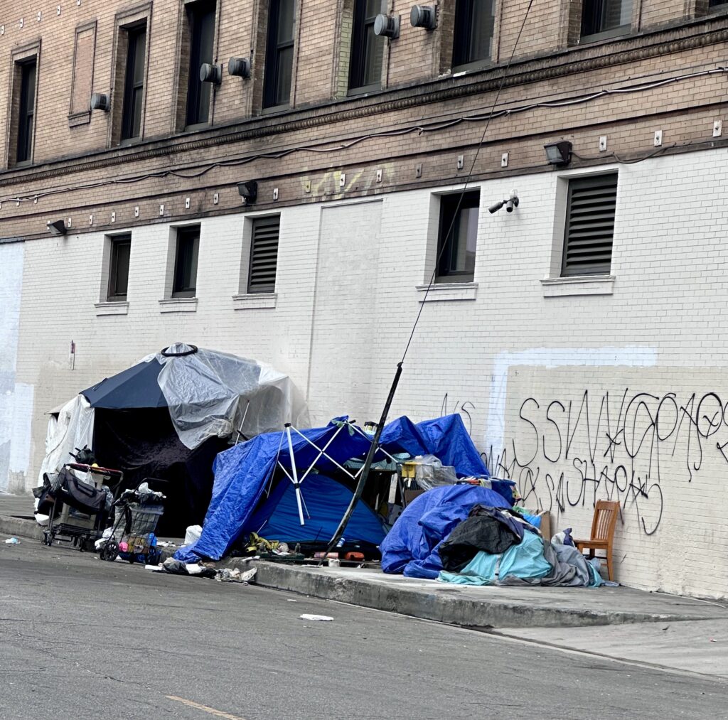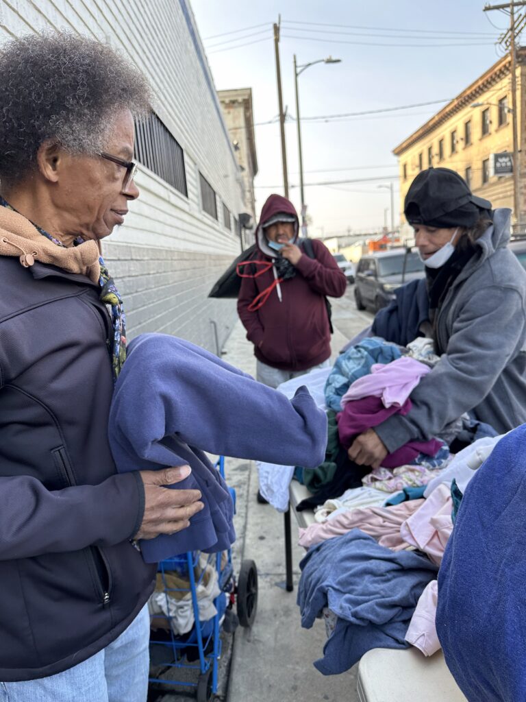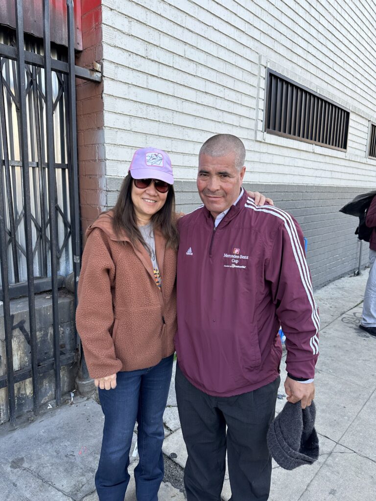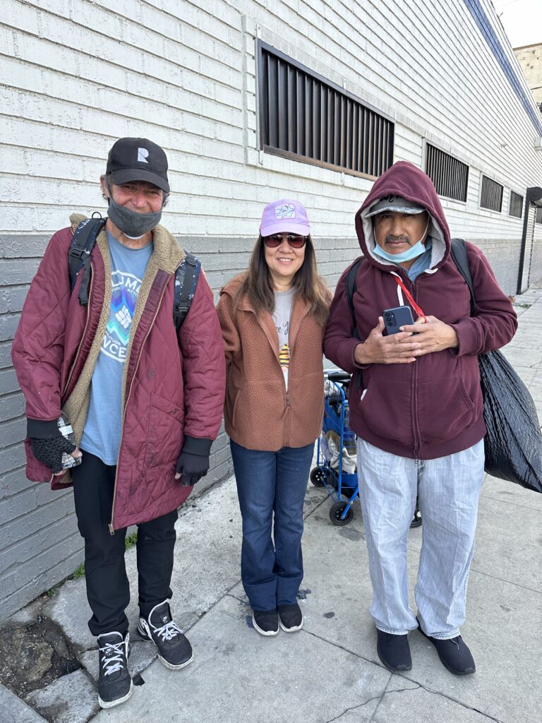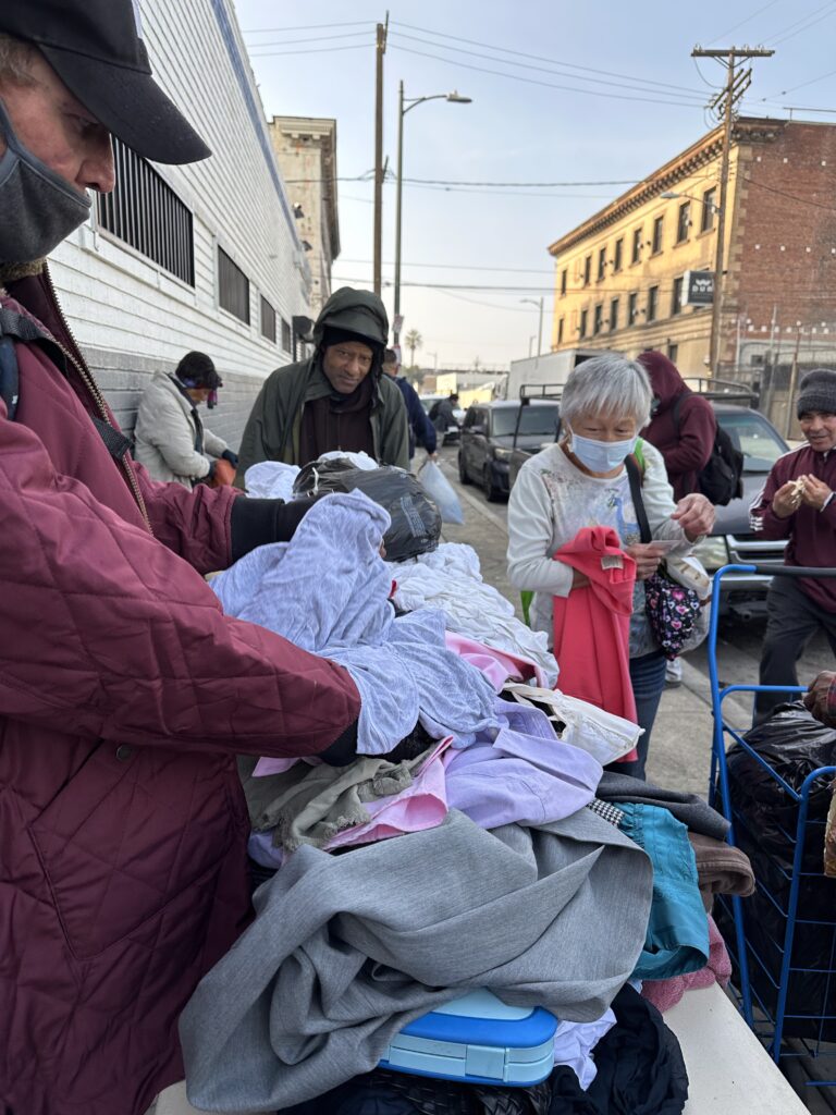Over time, downtown Los Angeles has undergone many changes, including the areas where we distribute food and clothing to our unhoused neighbors. Some familiar faces we once served are no longer there, while new individuals have taken their place. The lines for assistance at the Fred Jordan Mission remain long, and tents continue to line the sidewalks — though they are more spread out than in the past. Despite these visible shifts, the number of people experiencing homelessness in the area remains significant.