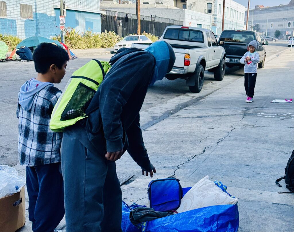 Our efforts to serve the homeless population in downtown LA continue, and we do so by providing essential items such as clothes, food, and hot fresh burritos. Unfortunately, the number of tents on the streets seems to be increasing. We’ve also noticed other outreach teams offering various services, including haircutting, hair coloring, and even a motorcycle organization that provides BBQ sandwiches.